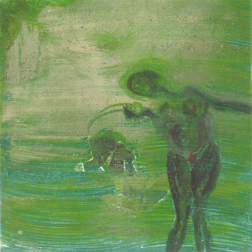 TECHNOLOGY: Mixed media with marble meal on cardboard 20 x 20 cm